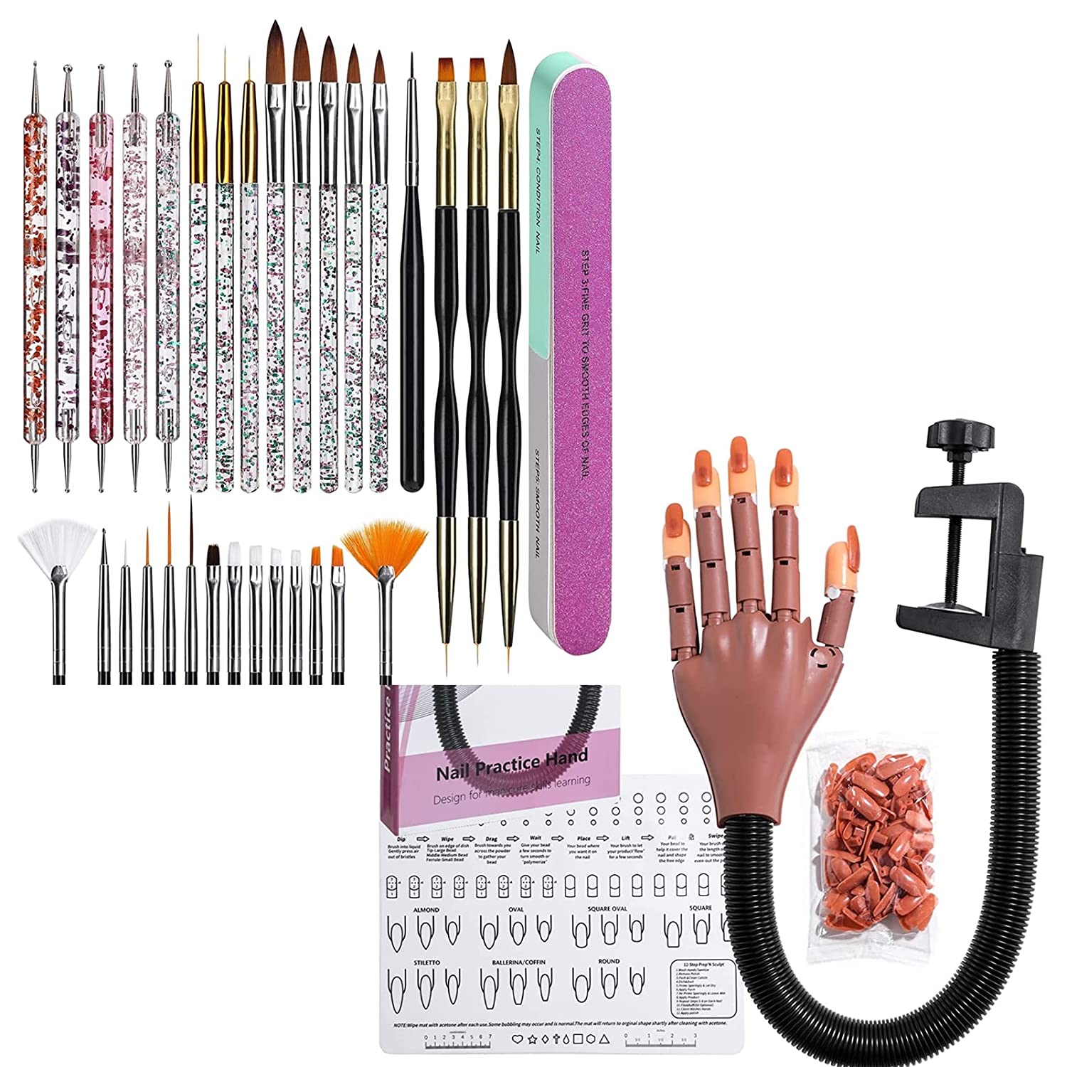Practice Hand for Acrylic Nails with 32 PCS Nail Tool for Nail Art U V Gel Nail Brushes