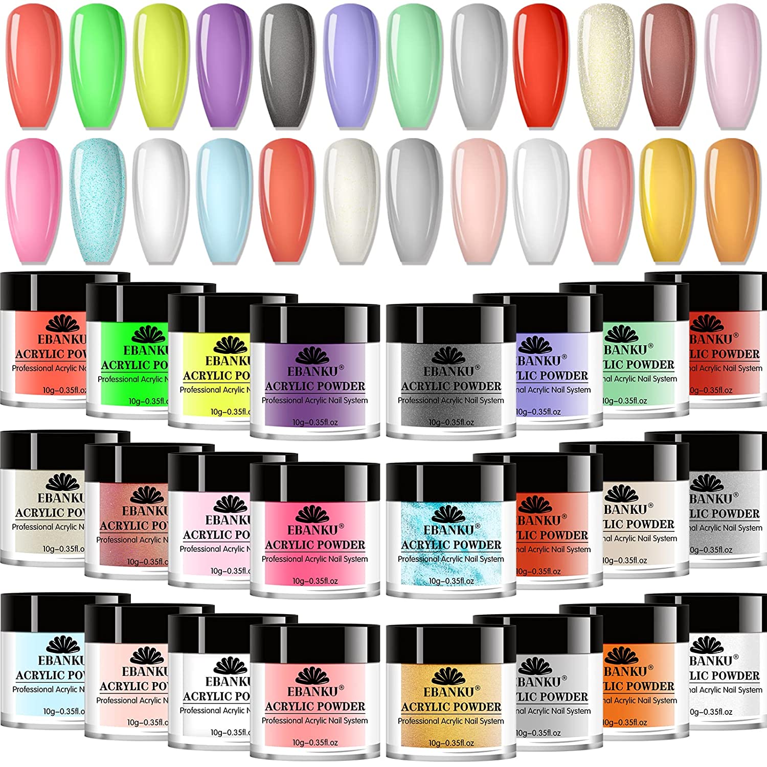 Acrylic Powder Set, 24 Colors Acrylic Powder Professional Acrylic Nail Powder for Nail Acrylic Extension, Nail Carving, Long-Lasting, No Nail Lamp Needed