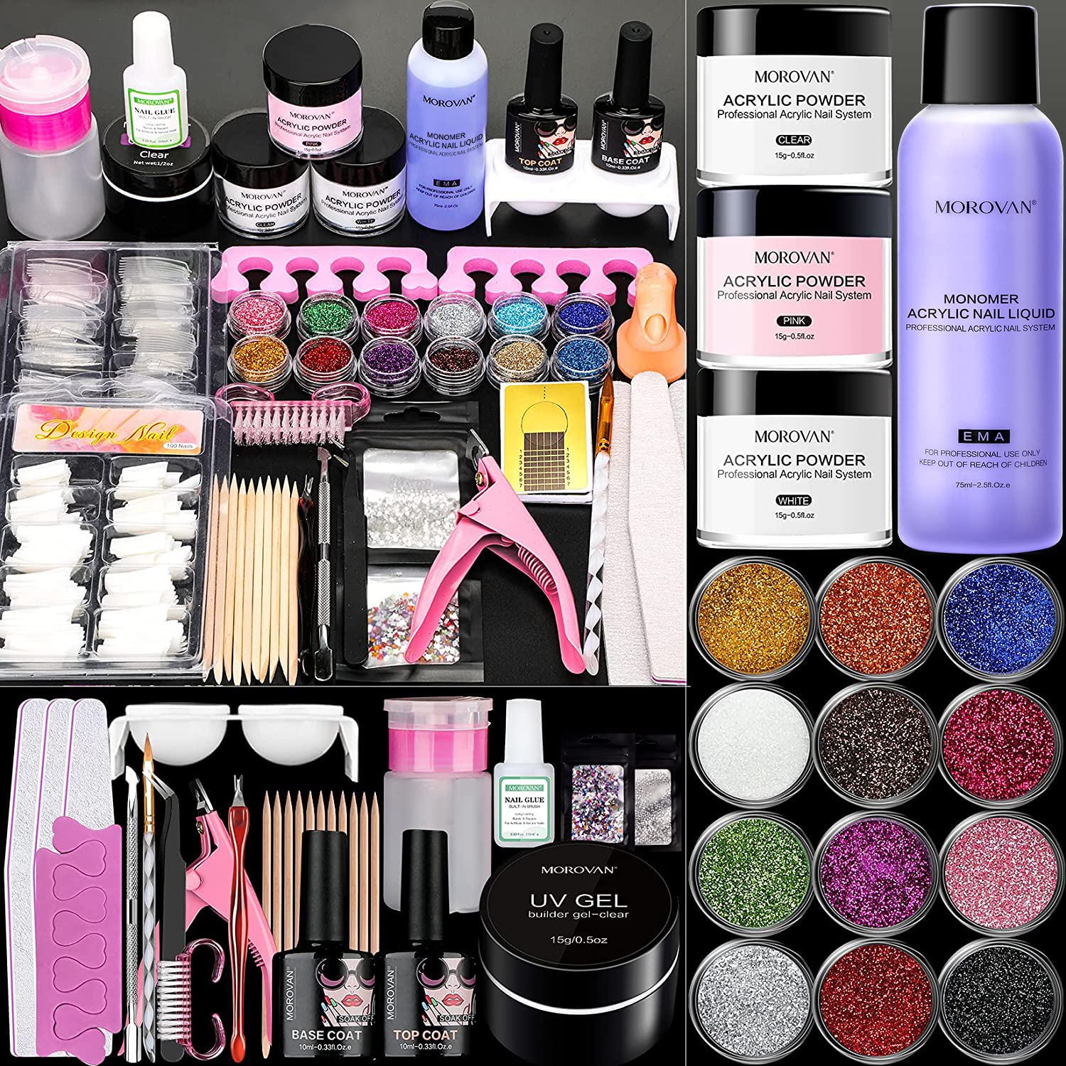 Acrylic Nail Kit – Acrylic Nail Powder Kit for Nails Set Professional Acrylic with Everything for Beginners Glitter Acrylic Nail Set DIY Nail Extension Starter Kit