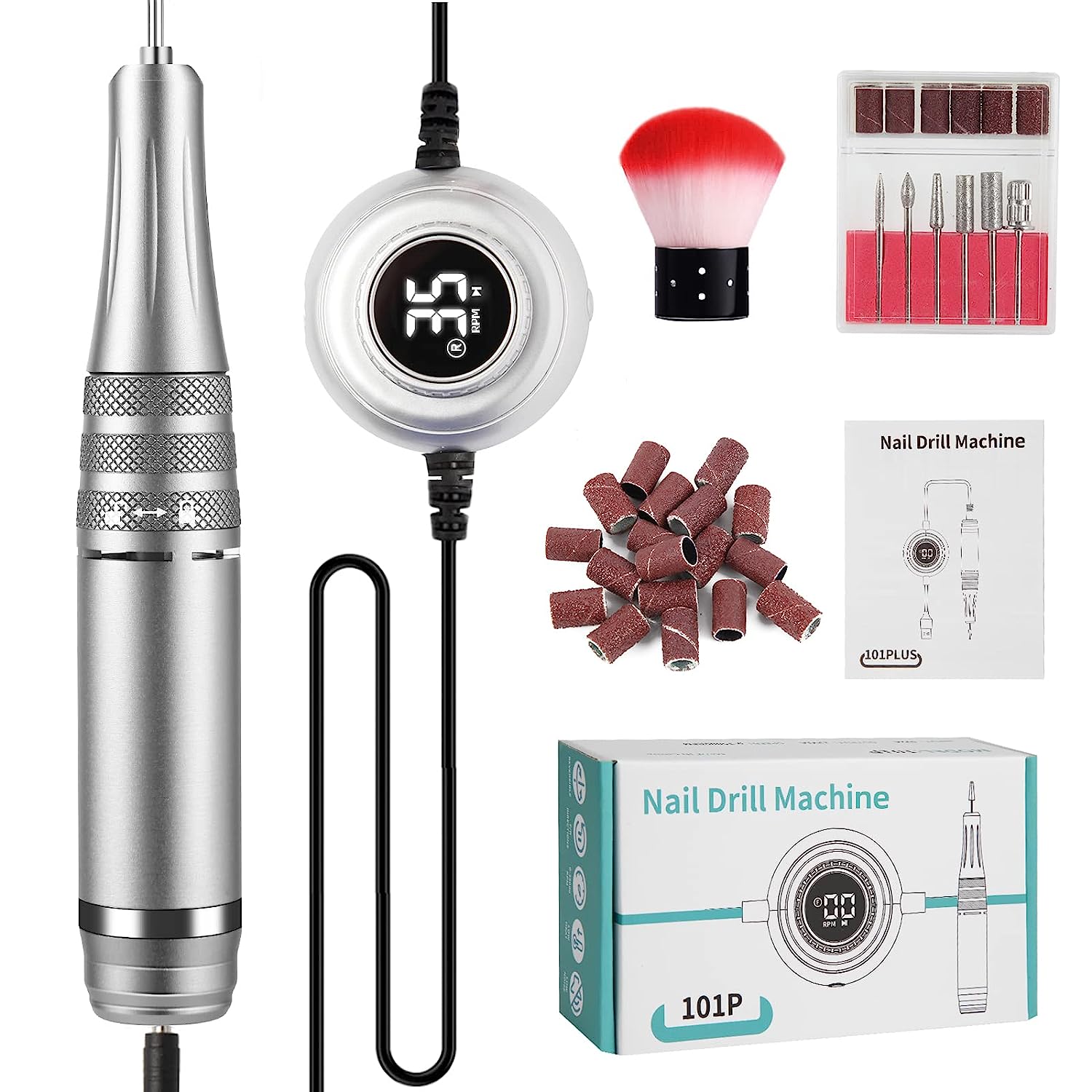 Nail Drill Machine,Electric Nail File,Portable Nail Drills Set for Acrylic Gel Nails,Professional Manicure Pedicure Polishing Shape Tools,Nail Drill Supplies for Nail Techs Home Salon Silver