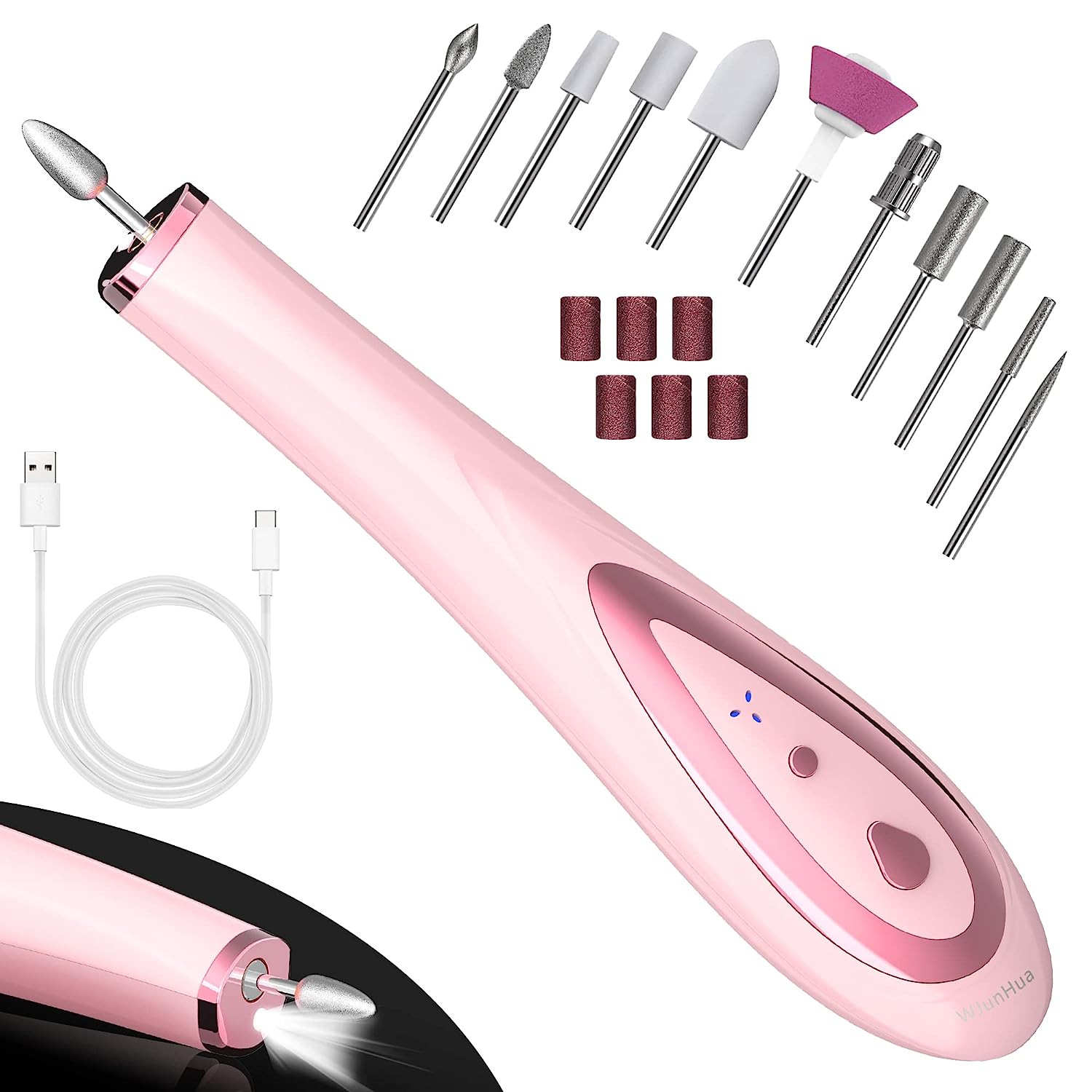 Nail File Drill Portable Nail Art Polisher Grinder Professional Manicure Pedicure Machine Nail File Set with 5Pcs Bits for Buffing Polishing Grinding Nail