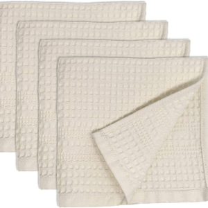 Waffle Towel Quick Dry Thin Exfoliating, 4 Pack Washcloths for Face Body, Classic Style (Cream)