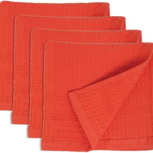 Waffle Towel Quick Dry Thin Exfoliating, 4 Pack Washcloths for Face Body, Classic Style (Coral)