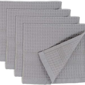 Waffle Towel Quick Dry Thin Exfoliating, 4 Pack Washcloths for Face Body, Classic Style (Pewter)