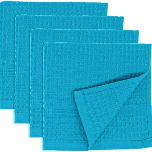 Waffle Towel Quick Dry Thin Exfoliating, 4 Pack Washcloths for Face Body, Classic Style (Aqua)