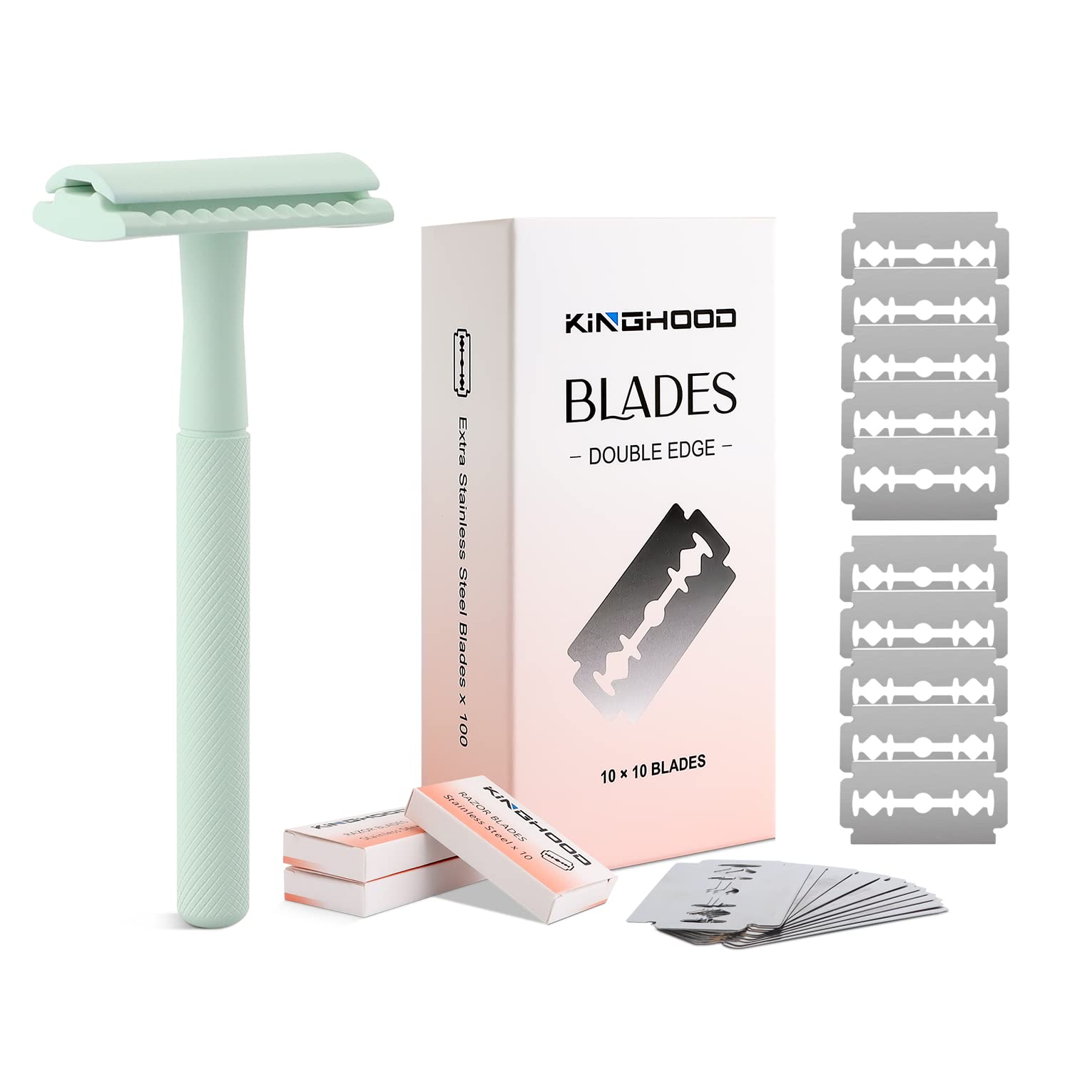 of 100 Count Razor Blades and Double Edge Safety Razor (Mint Green)