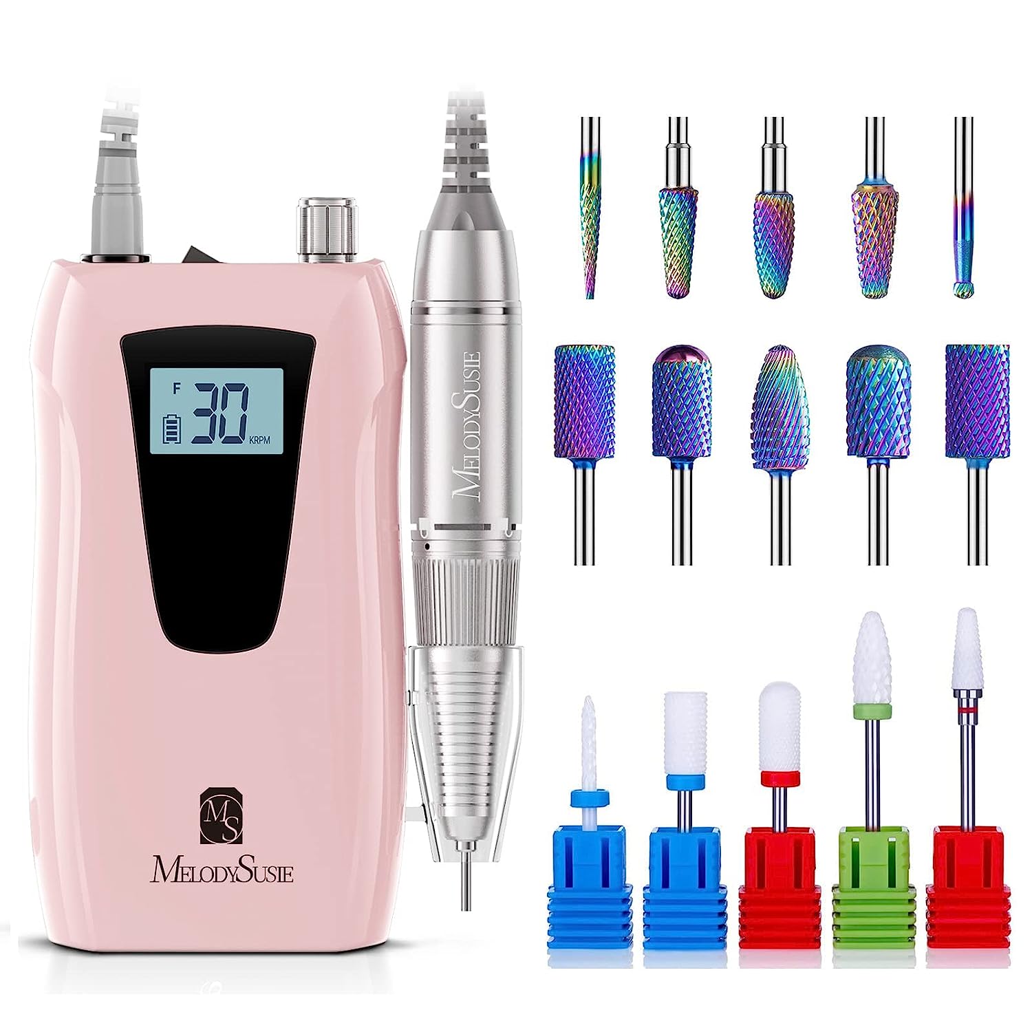 Rechargeable Nail Drill 30000RPM with 10Pcs Tungsten Bits and 7Pcs Ceramic Bits
