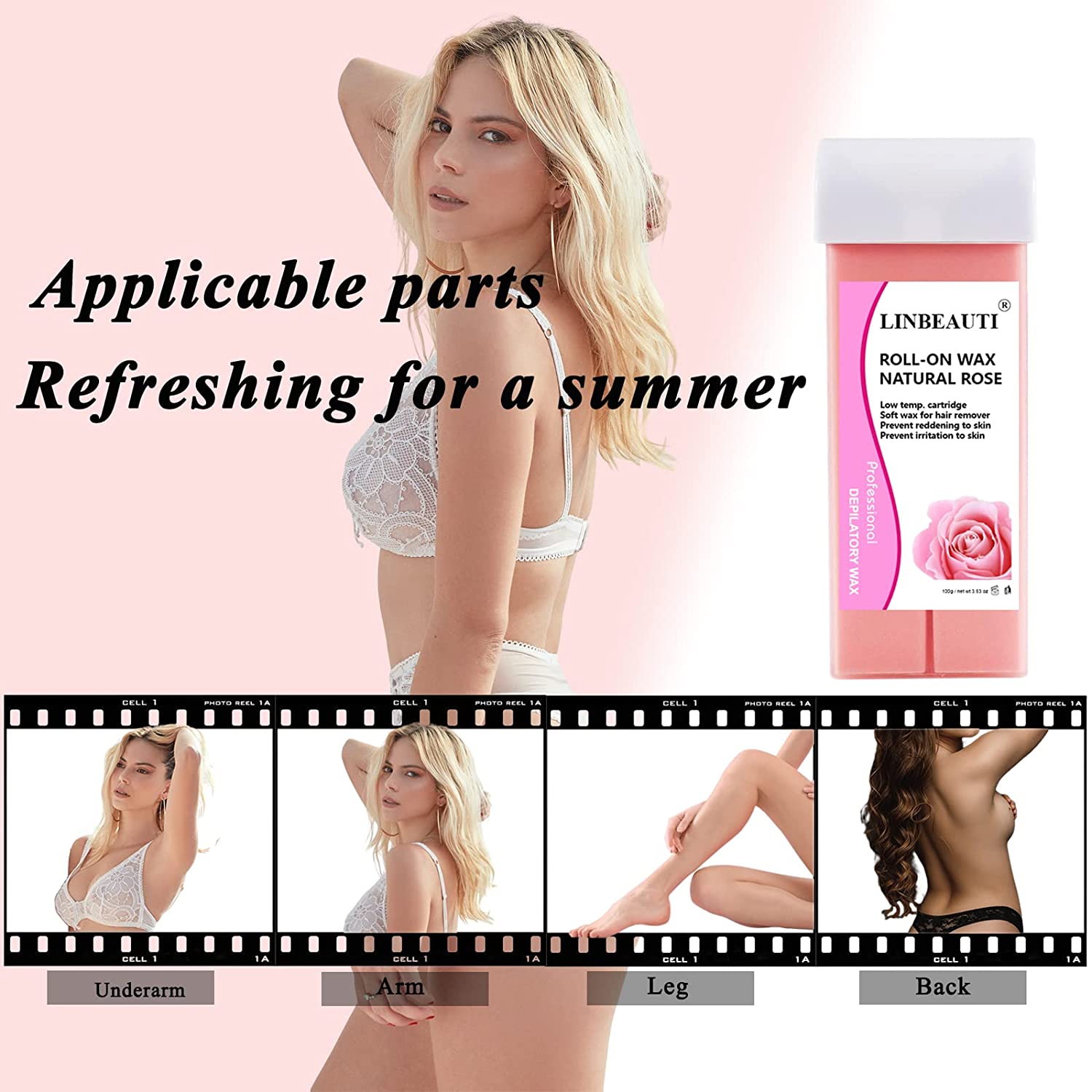 4 Packs Sugar Roll On Wax, Hair Removal Wax Cartridge, Body Waxing, 3.52 Oz/Pack