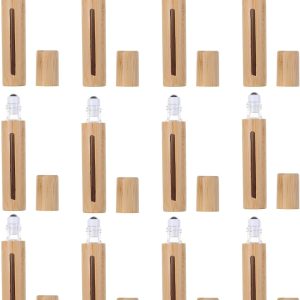 12pcs 10ml Bamboo Roller Ball Bottles, Empty Bottle for Essential Oils, Refillable Roller Bottles