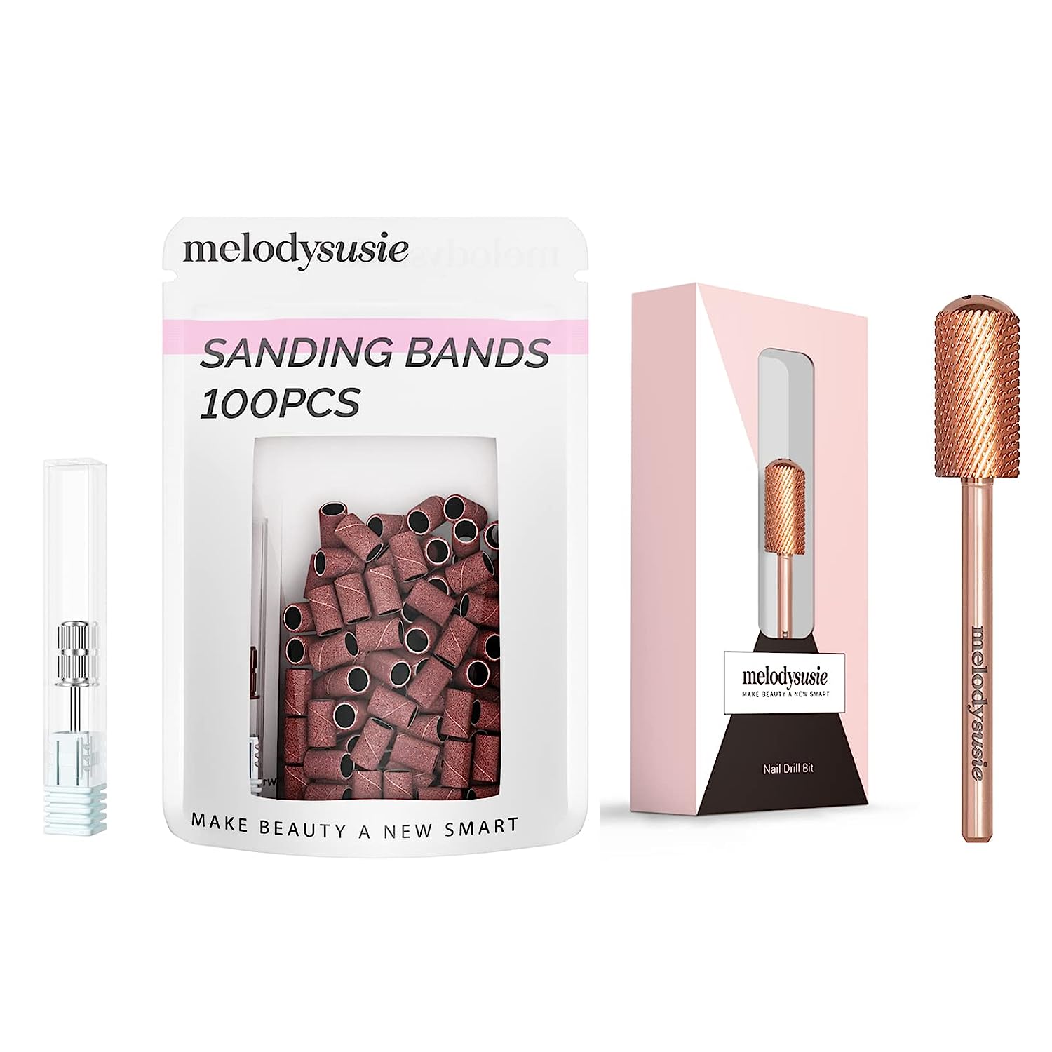 100 Pcs Nail Drill Bits Sanding Bands with Safety Nail Drill Bits