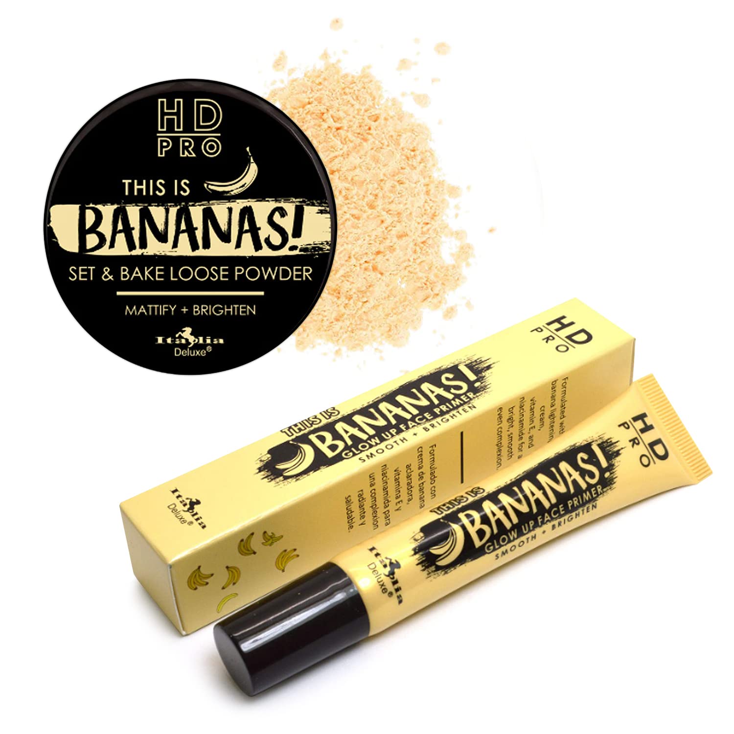Italia Deluxe Banana Loose Matte Setting Powder and Glow Up Face Primer Luminous 2 Piece Set Makeup