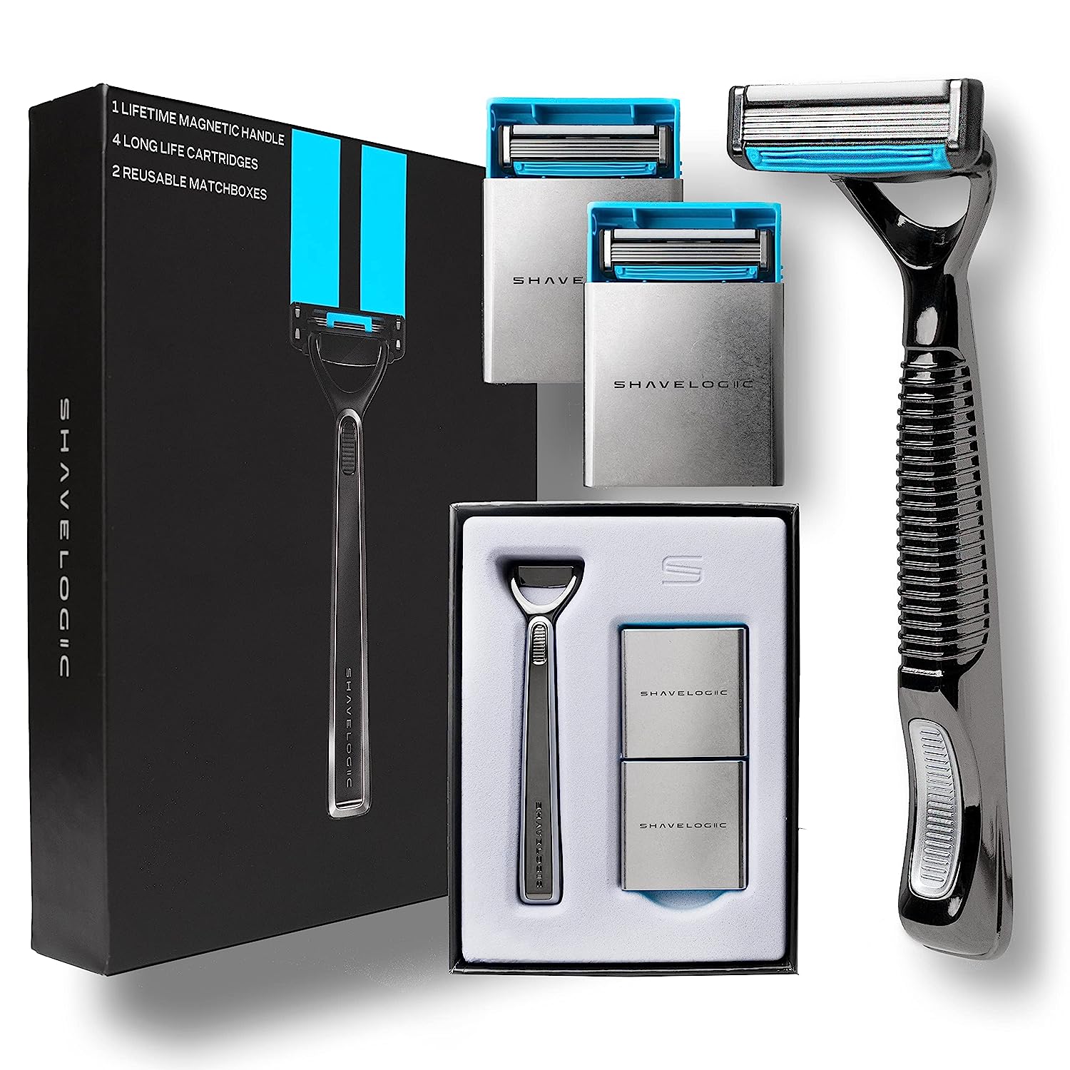 SL5 Shaving System, All-Metal Handle with Magnetic Attachment, Four 5-Blade Cartridges, Grooming Kit, Shave Razors and Blades, Razor Blade for All Hair, Onyx/Silver