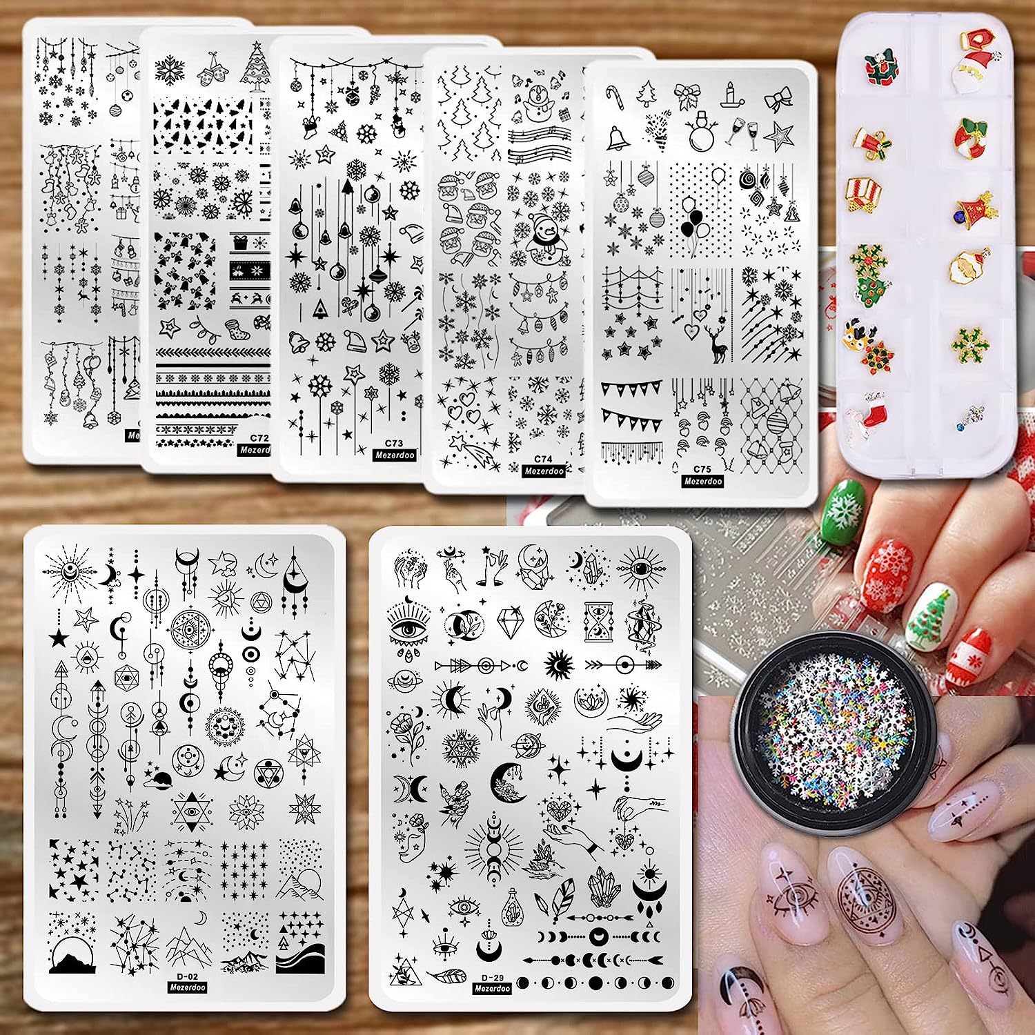 Nail Stamper Plate Christmas Starry Star Moon Design Stamping Plates Nail Art Kit Galaxy Night Sky Large Nail Stamp Templates Snowflake Nail Art Sequins Confetti Xmas Decorations Nail Art Tools