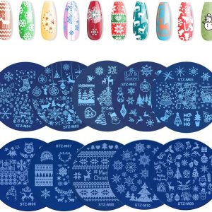 Christmas Nail Art Stamping Plates Xmas Nail Art Stamp Template Set Snowflake Snowman Stamp Plates Image Stamping for Christmas Nail Art Decoration (10pcs)