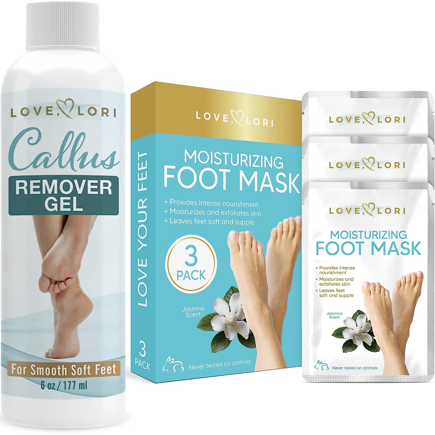 Callus Remover Gel & Moisturizing Foot Mask Set (3-Pack) for Smooth Soft Feet At Home