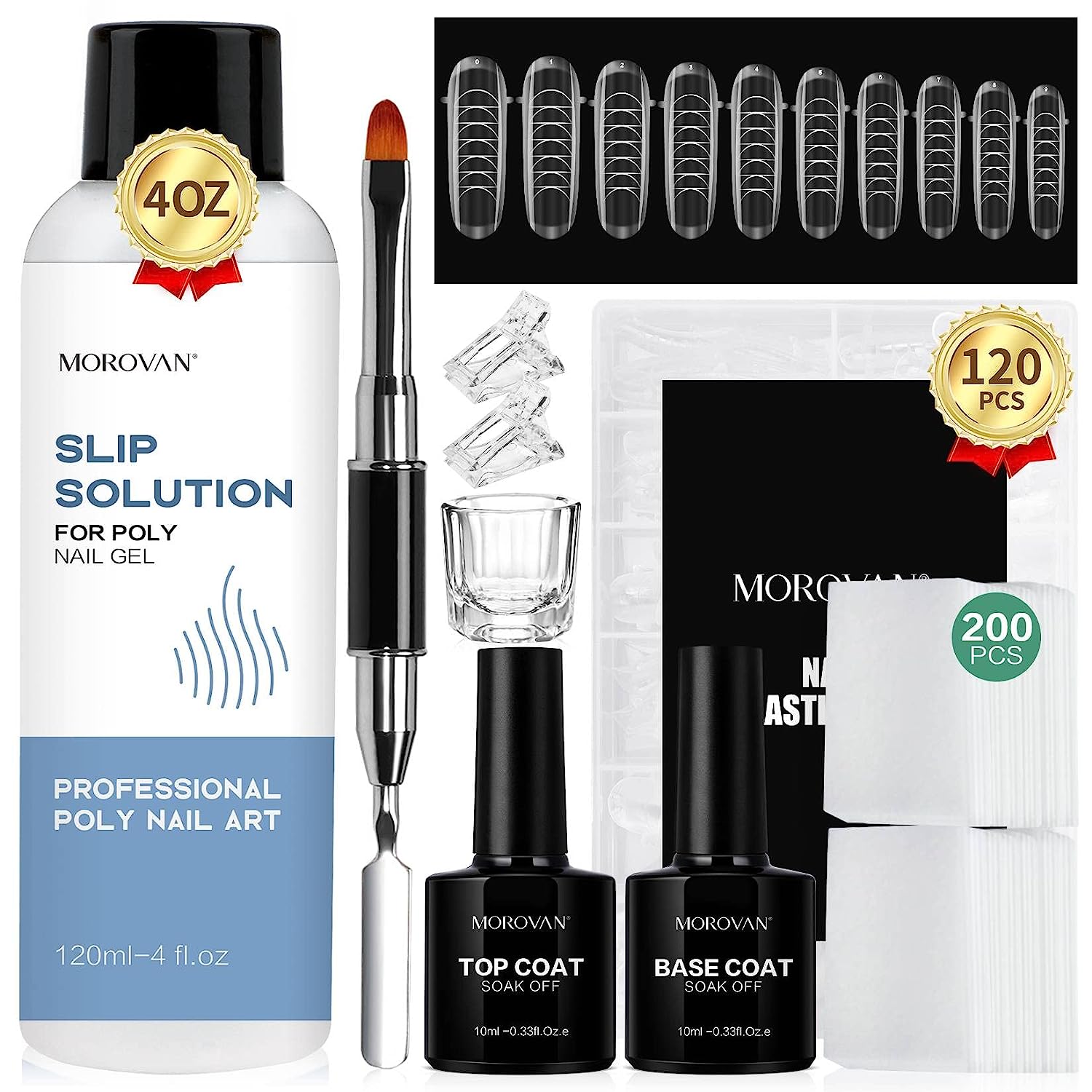Poly Gel Slip Solution – 4oz Slip Solution for Poly Gel Nails Nail Anti-Stick Extension Gel Slip Solution Kit with Base Coat Top Coat Nail Cleaner Dual Nail Forms Nail Tips Clip Cup Poly Gel Slip Solution Liquid for Poly Gel Nail Kit Nail Slip Solution