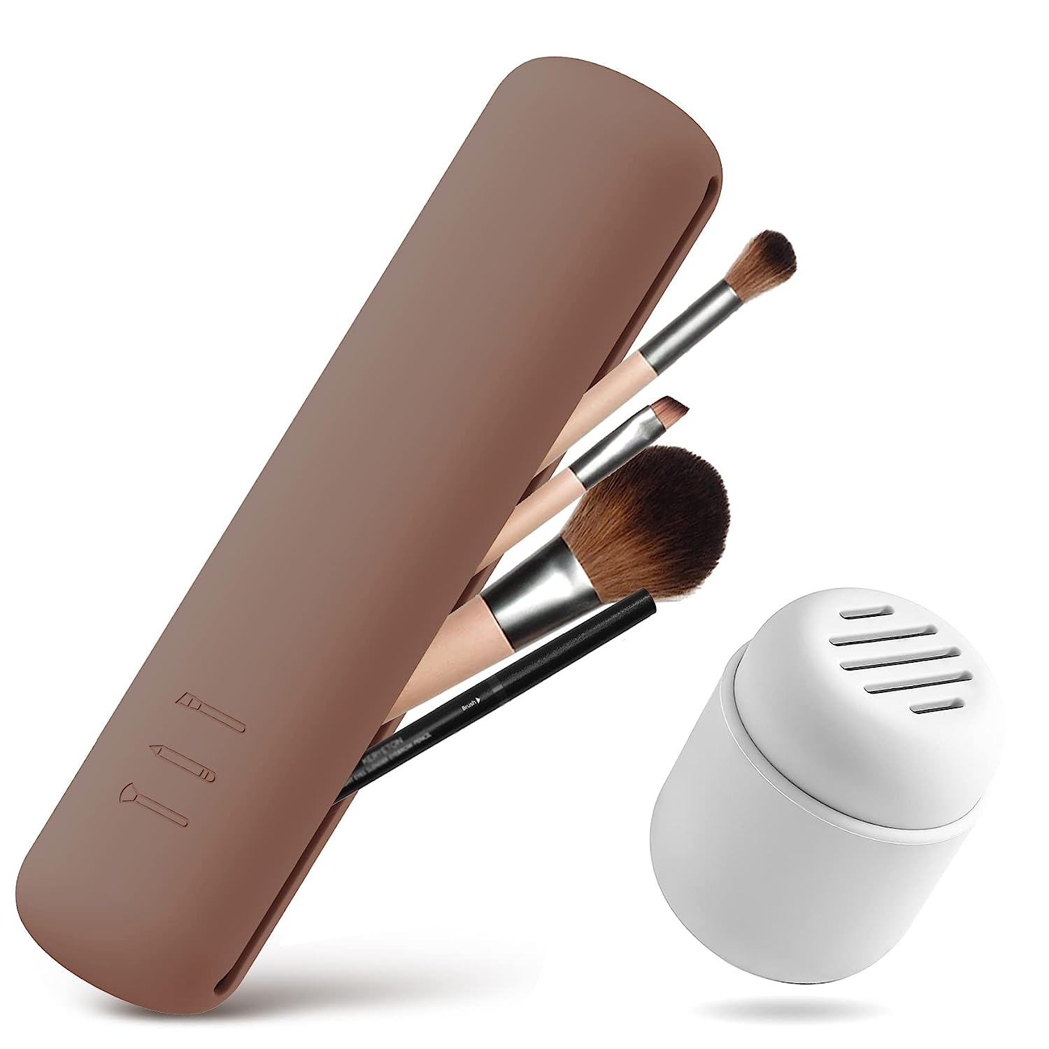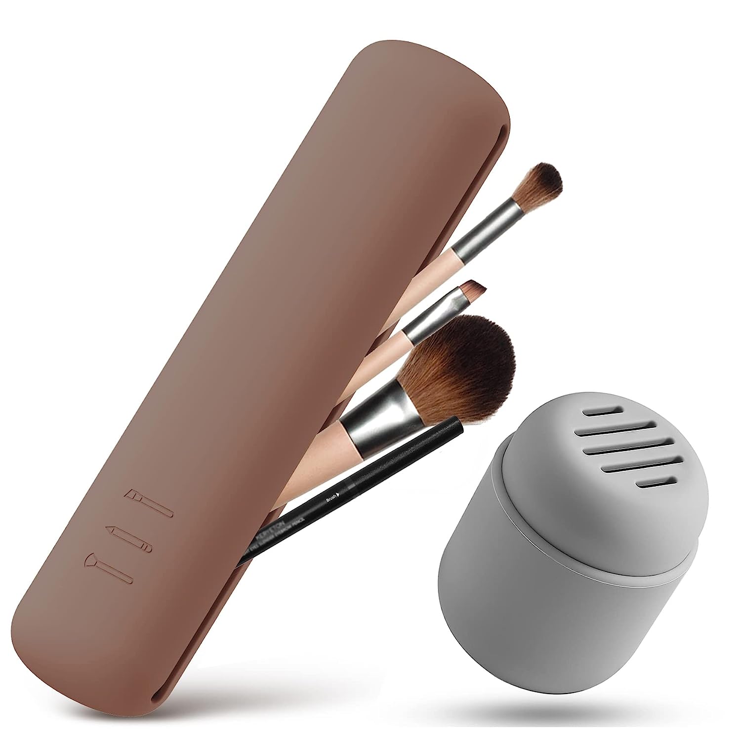 Silicone Makeup Brush Holder(Brown) and Makeup Sponge Holder Travel Case(Grey)