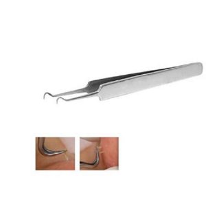 Stainless Steel Pimple Remover Blackhead Extractor Beauty Tool Silver Tone (Curved Needle)