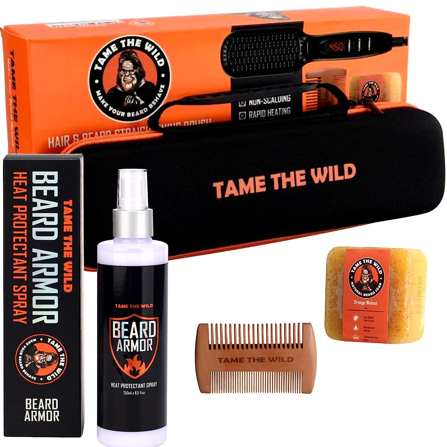 Elite Beard Straightener Brush and Tame”s Beard Armor Heat Protector Spray – Bundle and Save