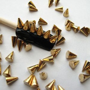 Art 3d 100 Gold Cone Spike Studs Flat Back 4mm5mm for Nails, Cell Phones