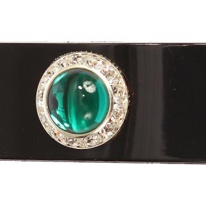 Hand Decorated Fench Black with Large Emerald and Swarovski Crystal Stones.65 Ounce