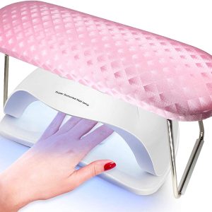 Nail Arm Rest Microfiber Leather Manicure Hand Pillow Stainless Steel Stand with No Slip Silicone Strip Professional Nail Rest Cushion Table Desk Station for Nail Tech Use (Pink)
