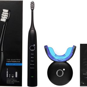 Teeth Whitening Kit with LED Light and Black Sonic Electric Toothbrush for Adults Bundle