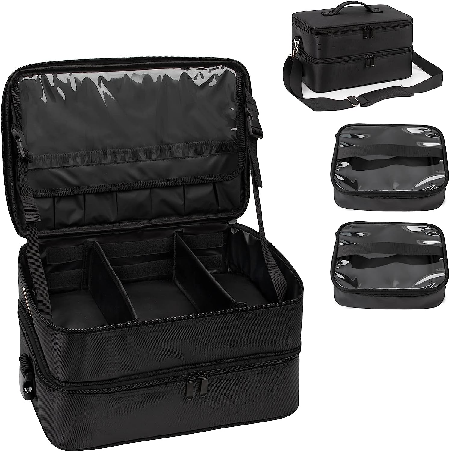 Large Makeup Case, Professional Makeup Artist Traveling Bag, Double Layer XL Makeup Travel Case Organizer for Artist Nail Technician Hairstylist Crafters with 2 Detachable Pouch & Shoulder Strap