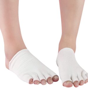 1 Pair Five Toe Gel Moisturizing Socks Open Toe Gel Spa Socks for Women Girls (White)