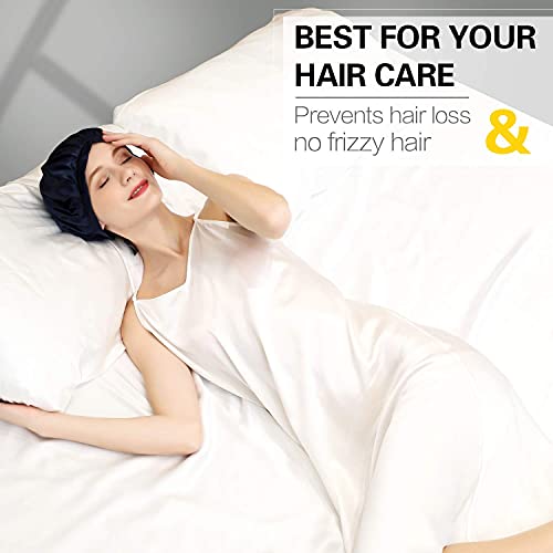PURE MULBERRY SILK: 100% Mulberry silk cap for sleeping.19 momme natural silk,smooth soft,lightweight,breathable and moisture wicking, great for your hair and skin.