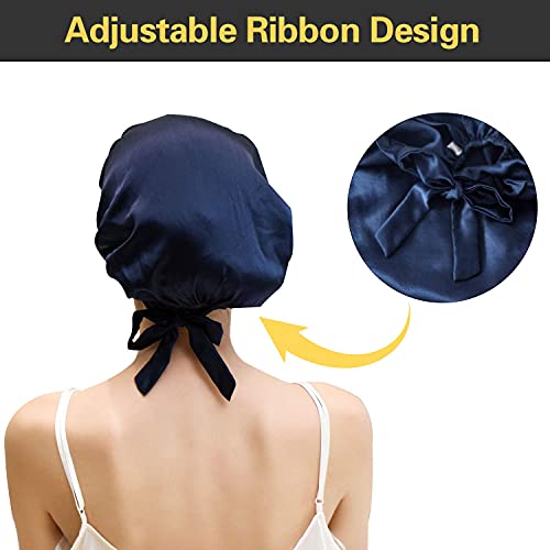 ADJUSTABLE RIBBON: Equipped with long ribbons,easy to adjust the sleep cap size to keep your head fit and comfortable. Hand made craft. It stays roomy snug on head and protects hair from pulling. Not too tight and no trace on head.