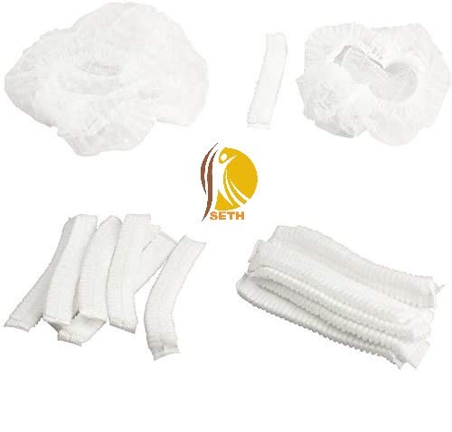 100 Pack 21In Disposable Mop Mob Nonwoven Bouffant Clipped Head Cover Caps | Hair Net | Beauty Salon Spa | Cooking Food Service Catering |Spray Tanning (White)