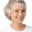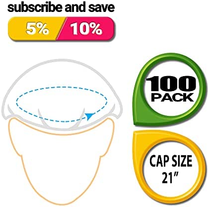 WHITE HAIRNETS FOR WOMEN 21 inches: Pack of 100 Disposable caps for hair coverage are made of spunbond polypropylene. Double-stitched elastic band keeps cap flat and comfortable on the forehead. Easy degradation and green to environment.