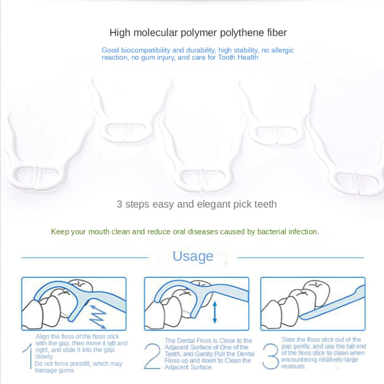 High-quality floss sticks: Dental floss is made from UHMWPE fibers.