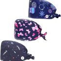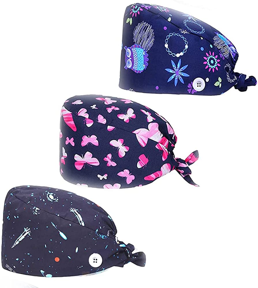 10Agirl 3 Pack Working Hat With Button And Sweatband Adjustable Unisex Tie Back Hats (Floral Pattern) At Men’S Clothing Store