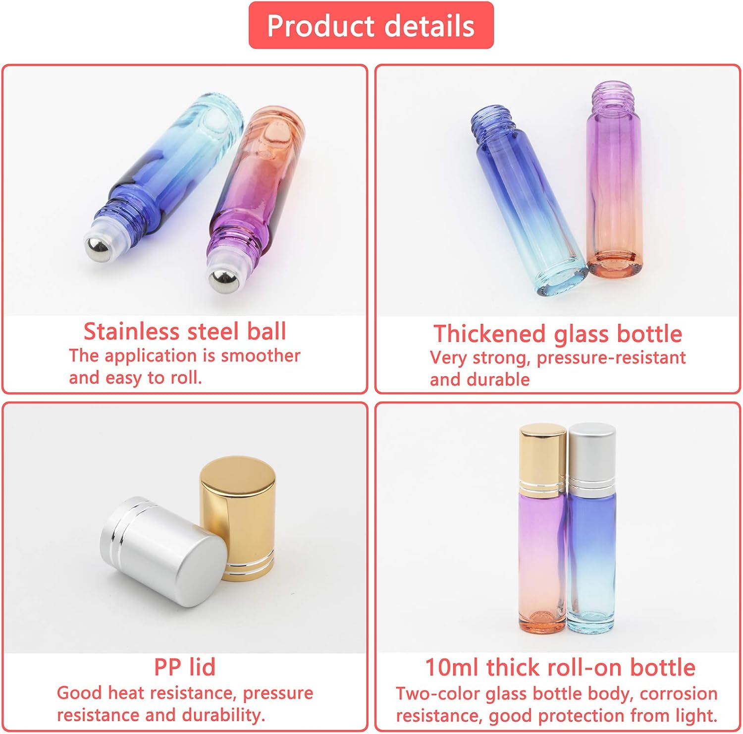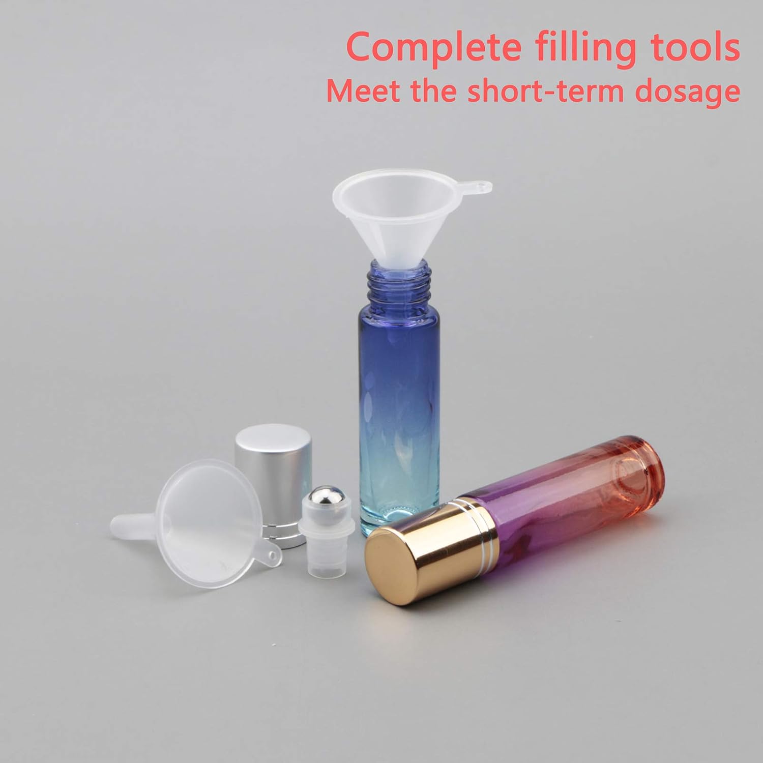* Package include: 5 x 10ml Blue Gradient Glass Roller-on Bottles 5 x 10ml Purple-Orange Gradient Glass Roller-on Bottles 1 x Bottle Opener Tool 5 x Funnels