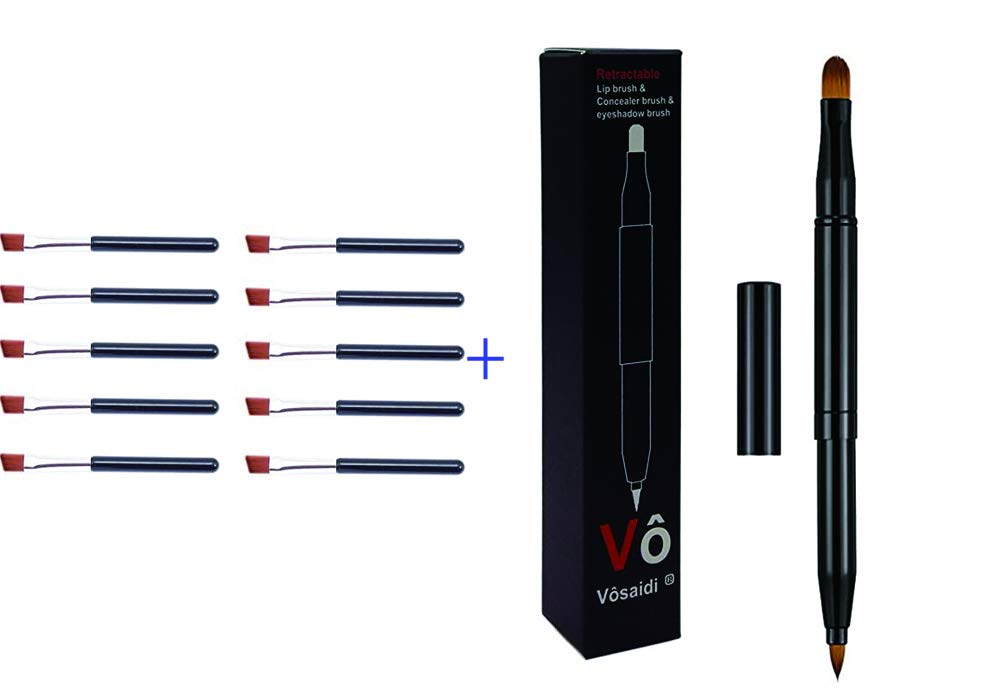 10pcs Eyebrow Brush Retractable Lip Brush Travel Lipstick Makeup Brush