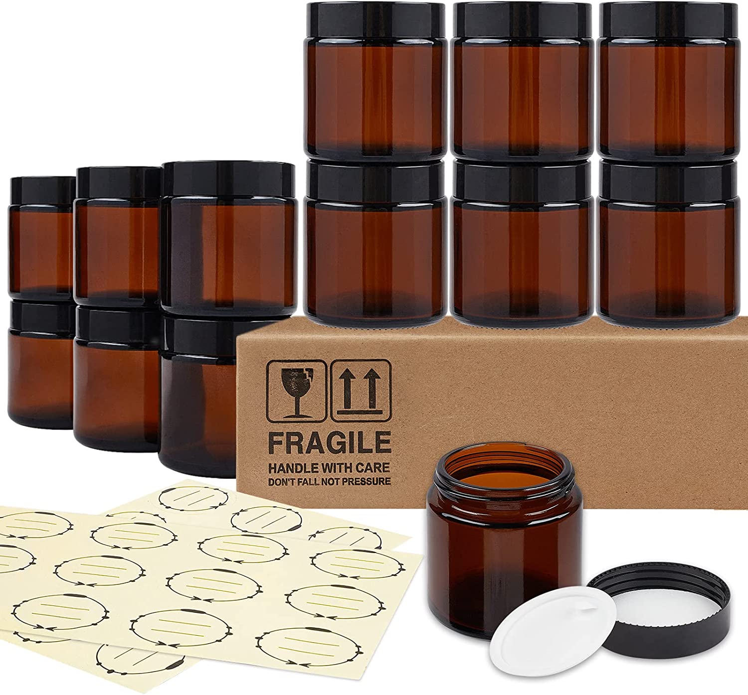 VALUE PACK: Package includes 12pcs 4 oz amber glass jars with 12 black screw lids, 12 good-sealing inner lids, and 12pcs personalized labels, convenient for you to mark your items in the jars