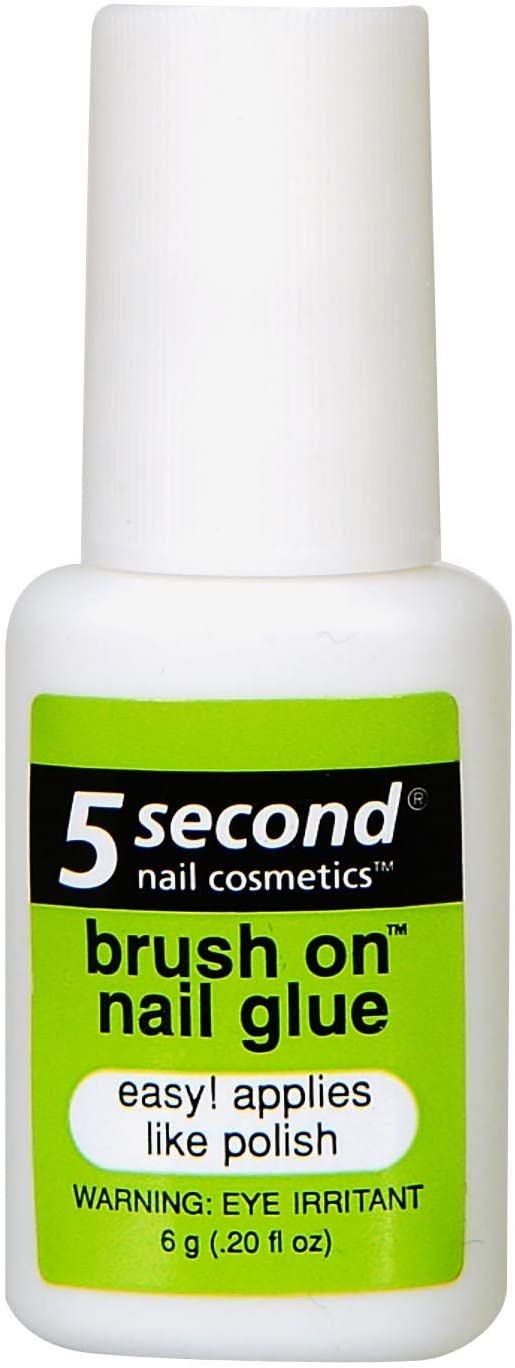 5 Second Brush On Nail Cosmetics Glue for all full cover nails, tips, wraps, repairs, and salon strengthening powder.