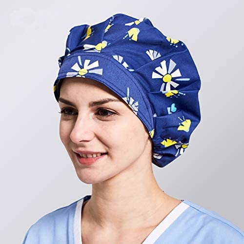 1Pc Womens Bouffant Scrub Cap For Long Hair Ladies, Navy Dandelion, Free Size