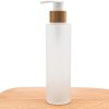 Specifications:Material: frosted glass + plastic pumpCapacity: 150mlSize: 45cm x 182cm (diameter x height)Packing: 1 per orderFeatures:Made of thick glass material, wood grain cover, tasteless, durable and strong, strong shock resistance, not easy to scratch or break.