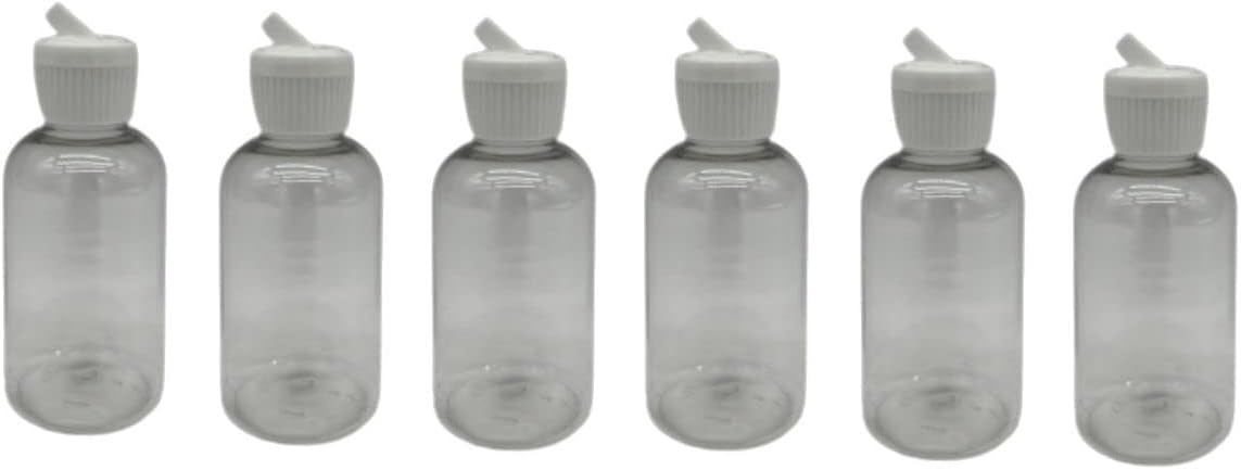 Specifications: Material: Boston Quantity: 6 pack/set Shape: Boston Round Packaging: 6 pieces X 2 oz clear Boston bottle with White Spout Cap.