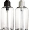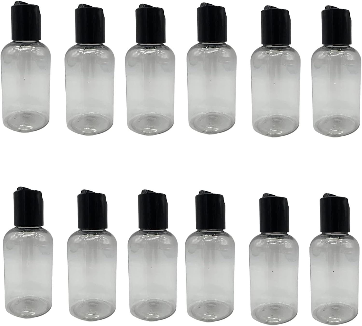 Specifications: Material: Plastic Quantity: 12 pack/set Shape: Boston Round Packaging: 12 pieces X 2 oz clear plastic bottle with black press down disc caps.