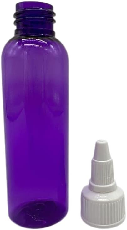 Uses: 2 oz Purple Plastic bottle with white twist top caps are the perfect portable addition to your household cleaning supplies.