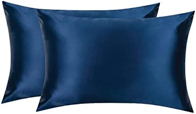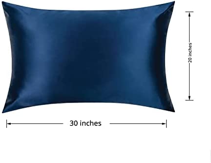 2 Pack 100% Satin Silk Pillowcases For Hair And Skin Soft Breathable Standard Size Nature Silk Queen And King (Navy Blue)