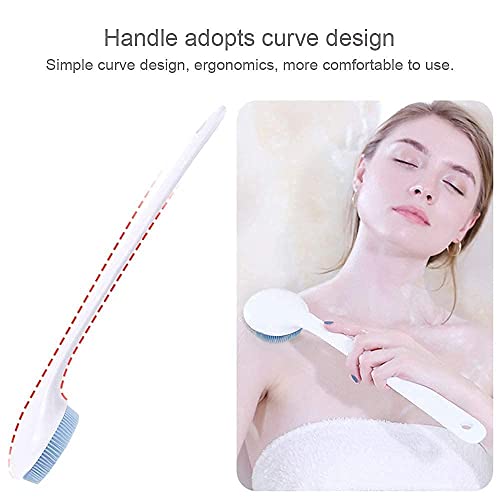Color: Pastel Blue Length of brush: 14.6 inch Brush head diameter: 3.15 inch After a hard day of work, do you need a shower to completely relax your tired body Are you tired of the mane that always falls out when you shower Do you want a bath body brush with a long handle for the convenience of bathing Do you want to improve your skin by taking a bath Now, Please try the new silicone bath brush! Food-grade silicone bath body brush head is soft, non-shedding, safe, odorless and fast drying, making skin enjoy gentle massage comfort. High quality upgraded PP handle, hollow handle, light, waterproof and non-slip, durable. Long handle simple curve design, easy to clean all parts of the body, ergonomic, more comfortable to use. The back brush scrubber removes keratin, removes dead skin, promotes blood circulation, stimulates the lymphatic system, and relaxes your mood. Make your skin smoother and softer. Now, your search is over, get this popular product for your family and friends!