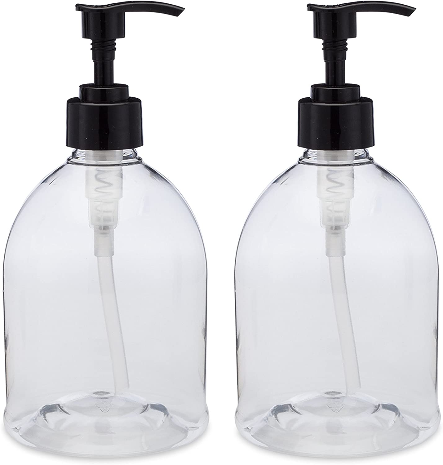 (2 Pack) Versatile 16 Ounce Refillable Designer Pump Bottles. Excellent Liquid Hand Soap, Homemade Lotion, Shampoo and Massage Oil Dispensers. Shatterproof PET Plastic