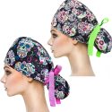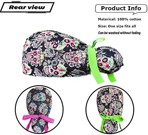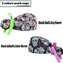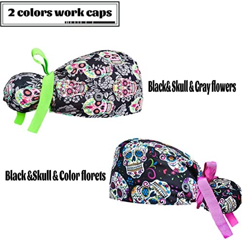 2 Pack Working Cap With Buttons And Sweatband,Cotton Working Hats With Adjustable Ponytail Pack Ribbon Tie Back Hats For Women & Men,Long Hair Head Covers Shower Caps (Q) One Size