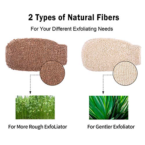 2 Packs Bath Shower Gloves Mitt For Exfoliating And Body Scrubber, Different Styles (Natural Jute And Natural Bamboo Fiber)Eco-Friendly Exfoliating…