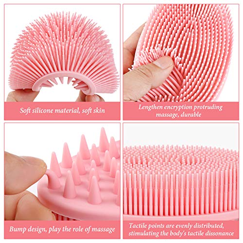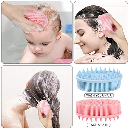 2 Pieces Exfoliating Silicone Body Scrubber, 2 In 1 Silicone Bath And Shampoo Brush, Wet And Dry Scalp Massager/Brush For Skin Care Scalp Massager – Pink & Blue